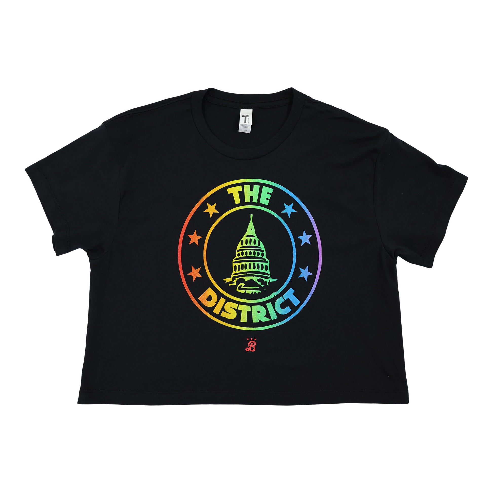 Celebrate your DC Pride in this Black Heather shirt with a vibrant rainbow gradient!