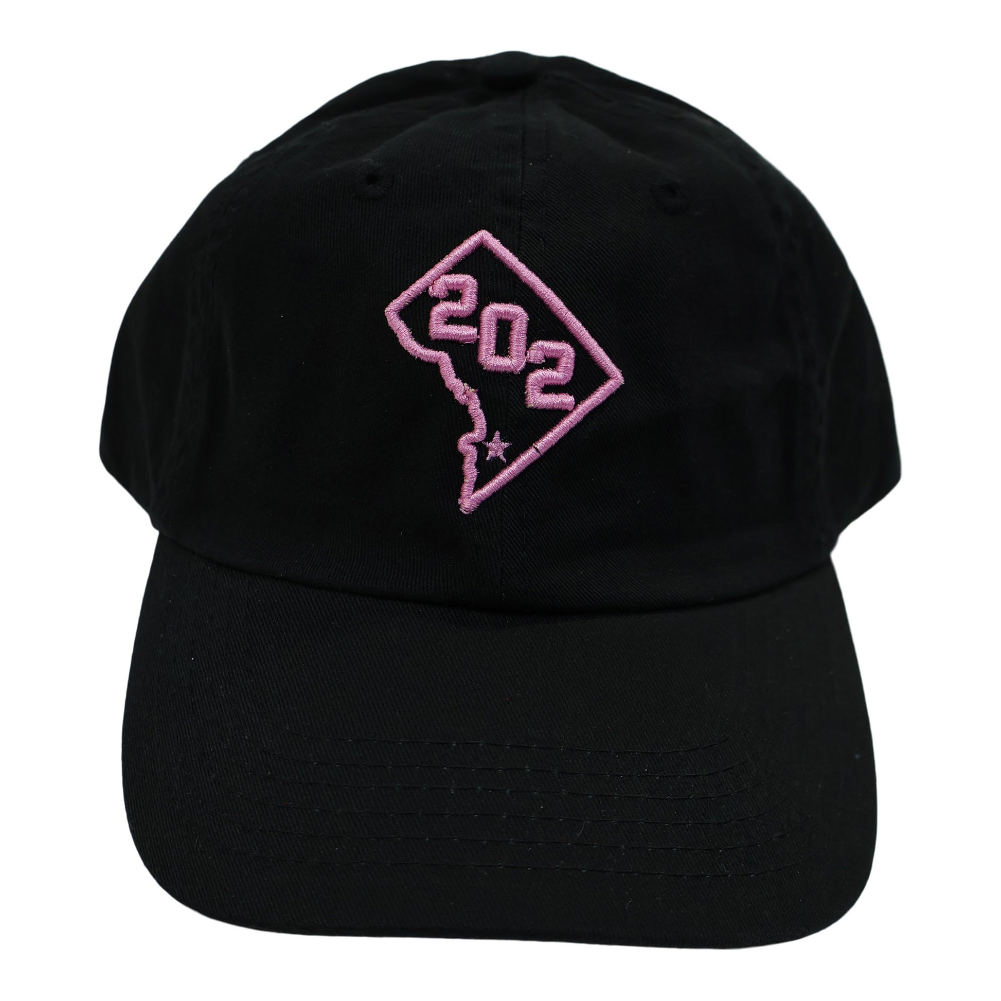 - Black hat embroidered on the front & back with pink thread