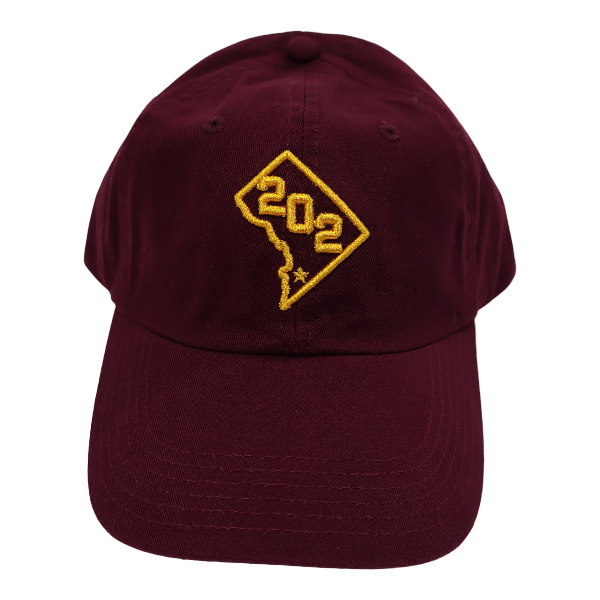 - Maroon hat with athletic gold (yellow) embroidery